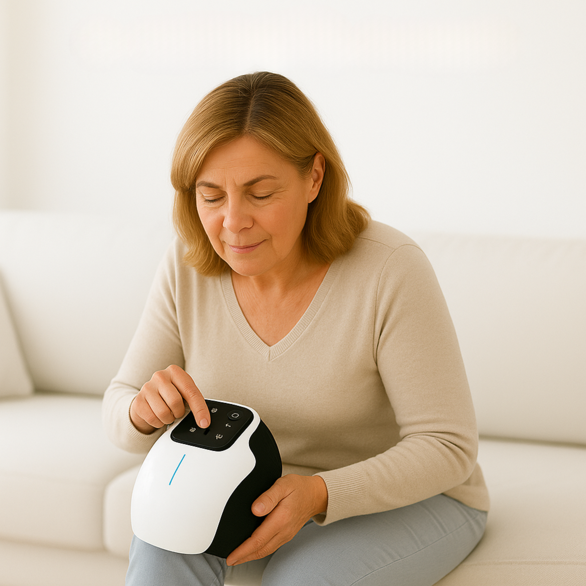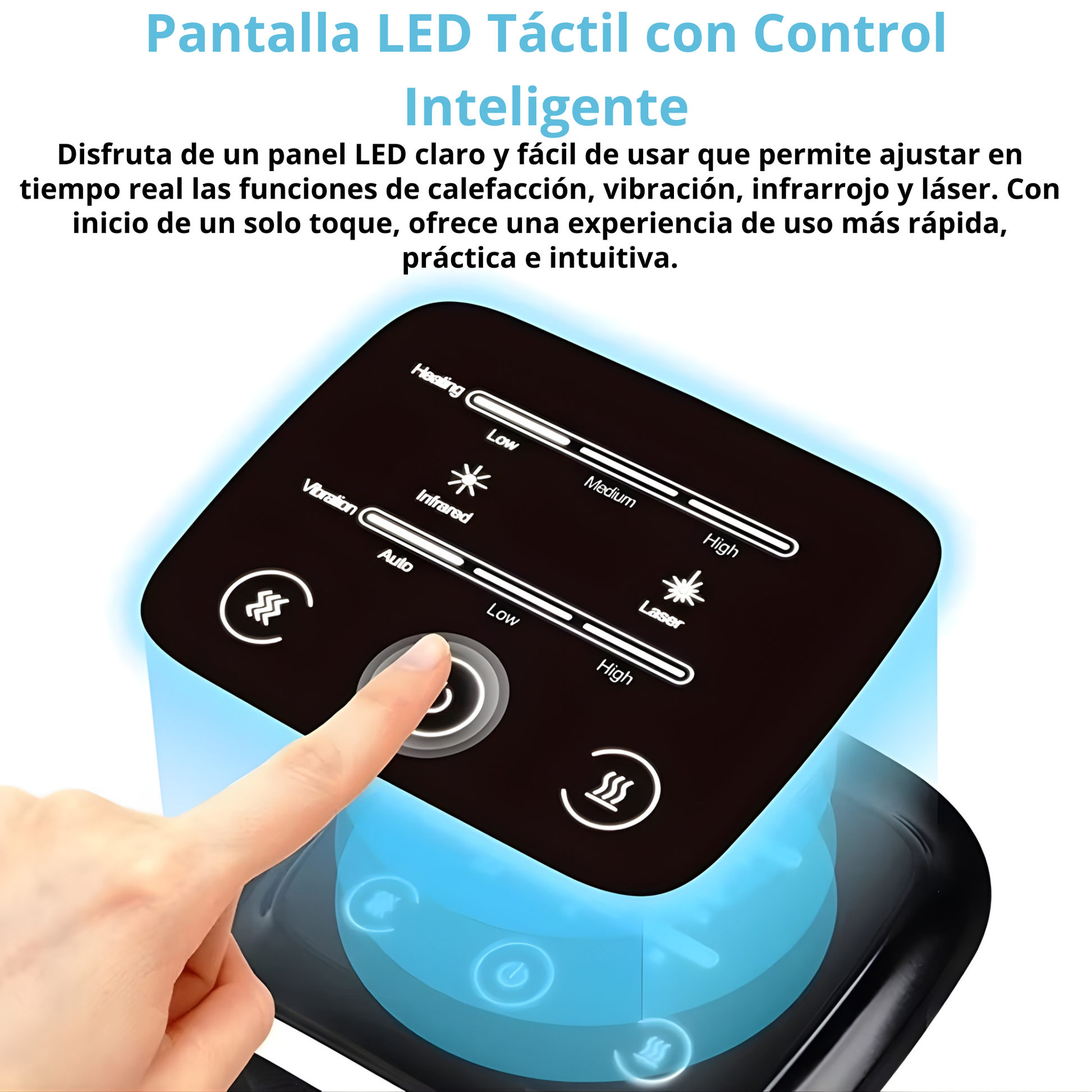 La tecnología 4 en 1 —calor infrarrojo, vibración profunda, compresión uniforme y luz terapéutica— trabaja para aliviar tensión, mejorar movilidad y revitalizar tus rodillas rápidamente. Diseño inalámbrico, pantalla LED y ajuste perfecto para que recuperes comodidad, fuerza y movimiento sin complicaciones.